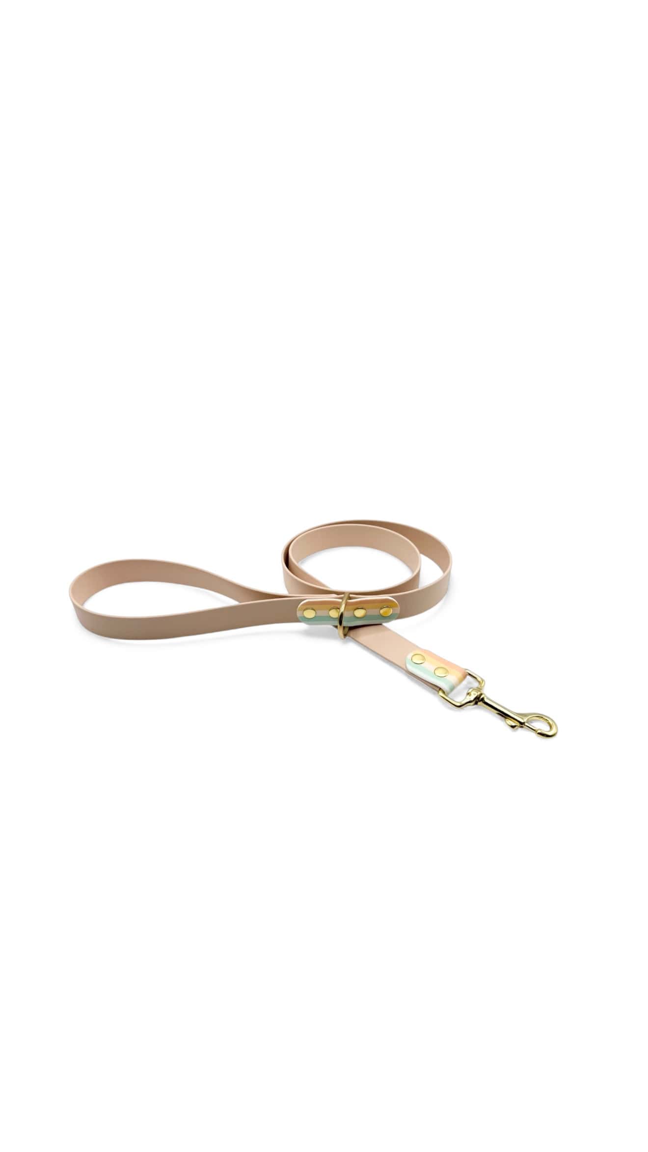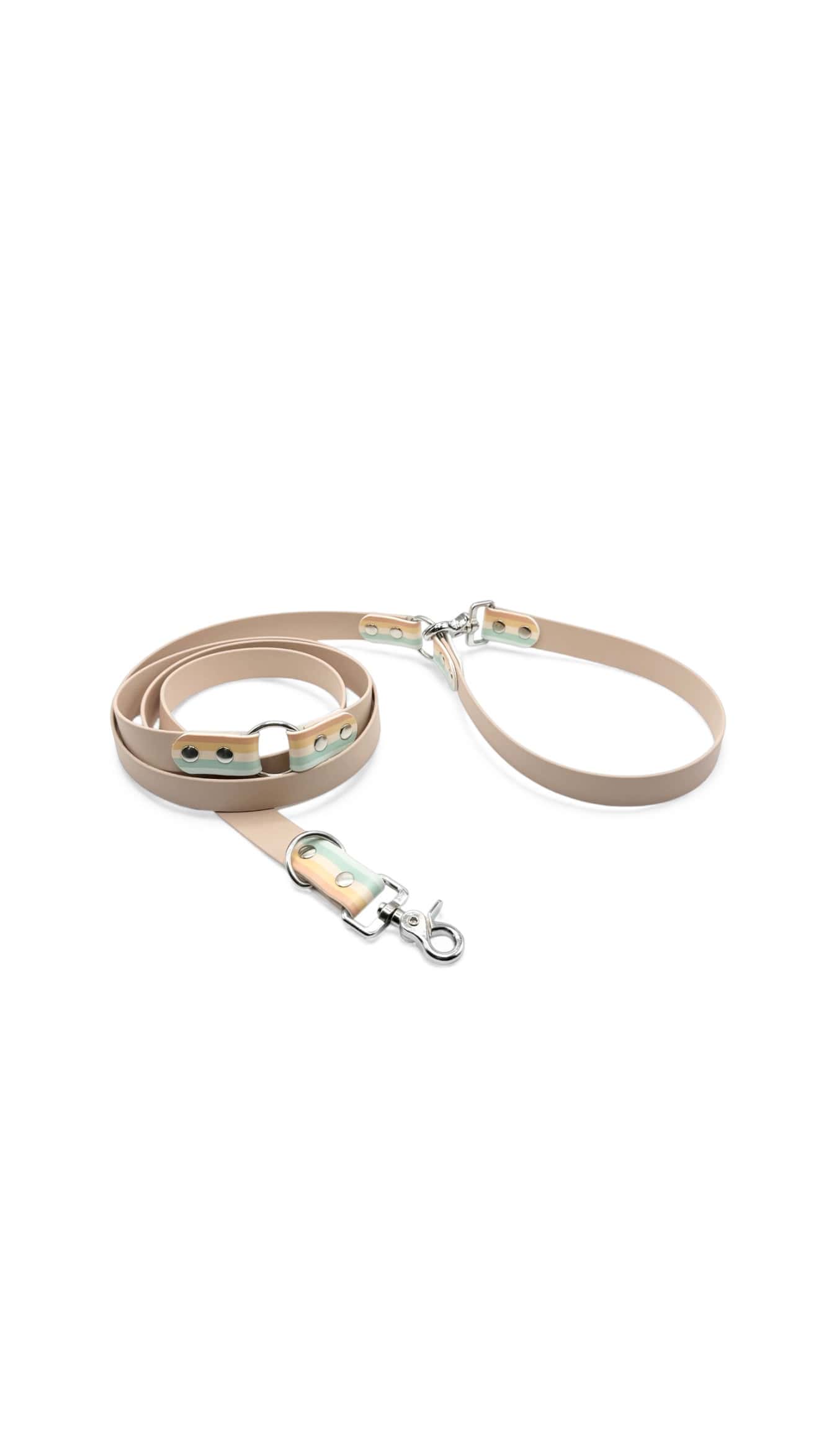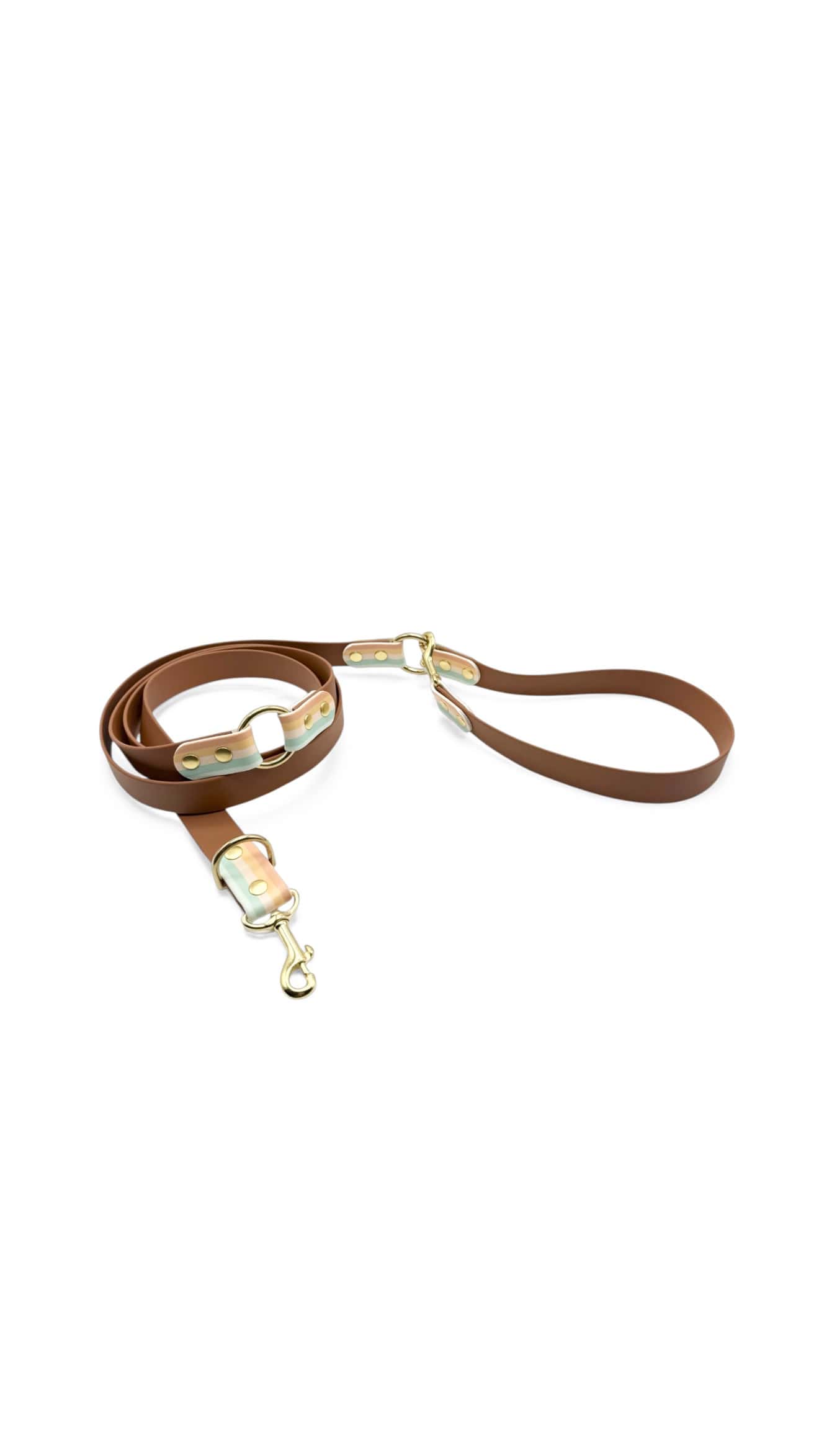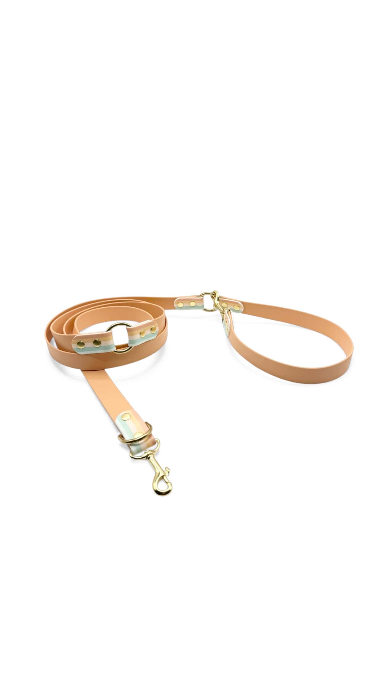Plongez dans l’univers lumineux de La Goldie avec cette collection exclusive signée Splash by Happy. Des accessoires en biothane waterproof, alliant style et résistance, dans une palette douce et solaire : vert amande, pêche, beige nude et camel, rehaussée d’un motif rayé exclusif aux couleurs de l’événement.