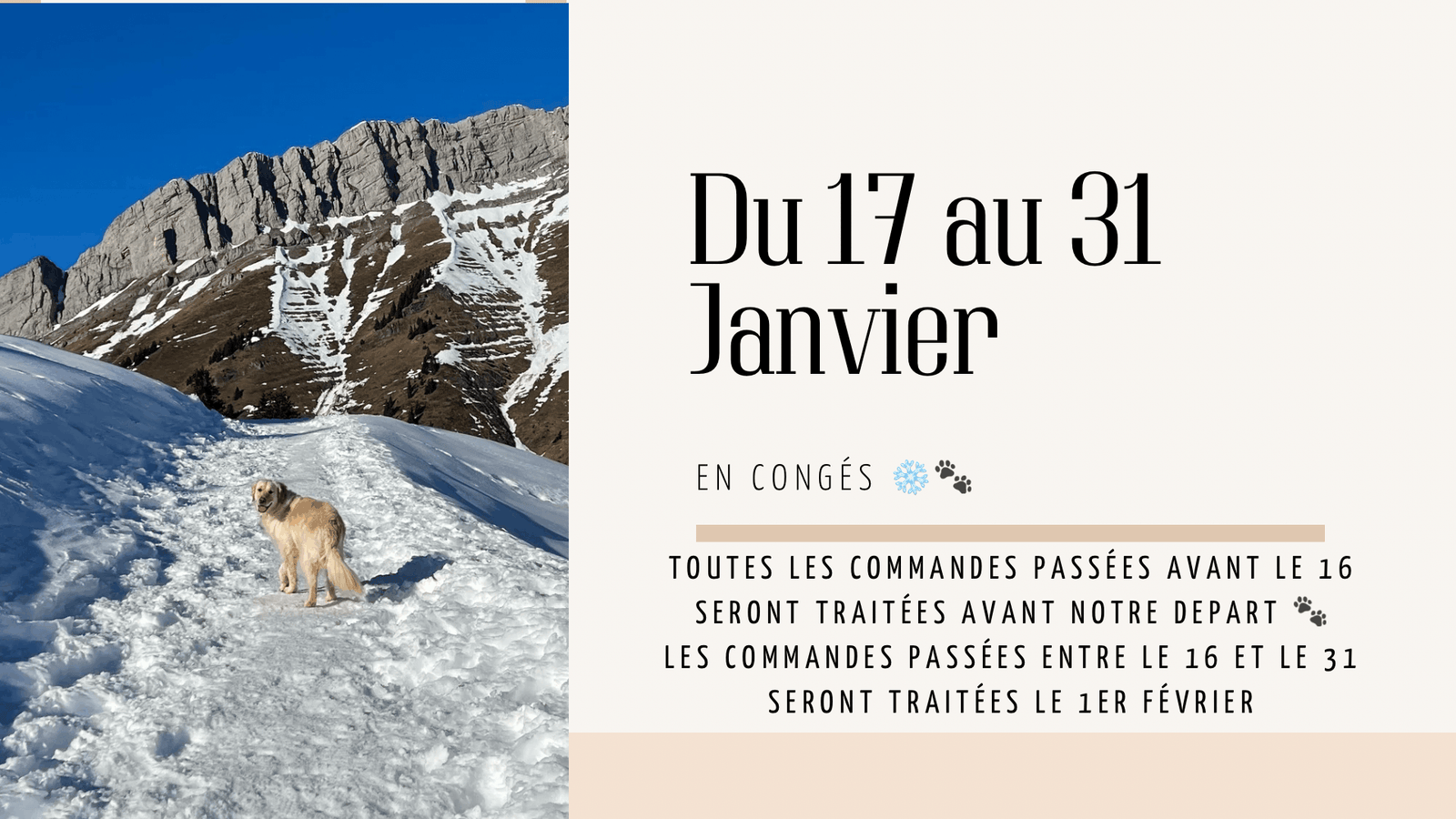 Expédition de la commande : de 2 à 5 jours ouvrés en fonction du temps de fabrication.